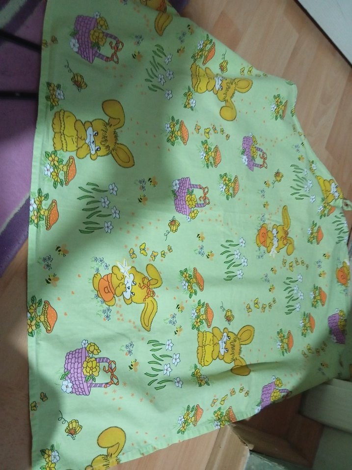 Pastel yeşil renkte, sevimli hayvan desenli, yumuşak sentetik kumaştan Emzirme örtüsü