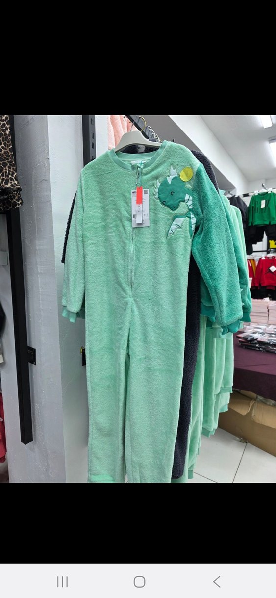 Pastel yeşil renkte, yumuşak dokulu erkek çocuk bornozu. Ön kısmında kolay kullanım için fermuar ve sevimli dinozor figürü bulunur.