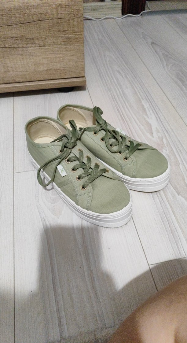 Pastel yeşil renkte, platform topuklu sneaker, 1 defa giyilmiştir, yepyeni, sorunsuz
