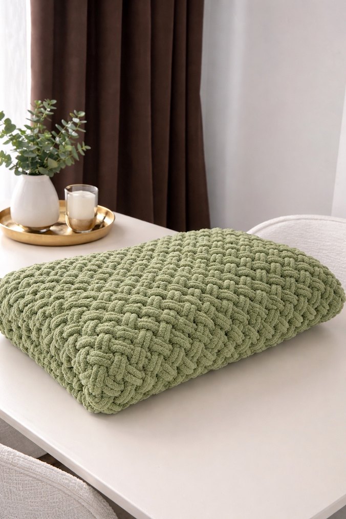 Pastel yeşil renkli, yumuşak örgü çocuk battaniye