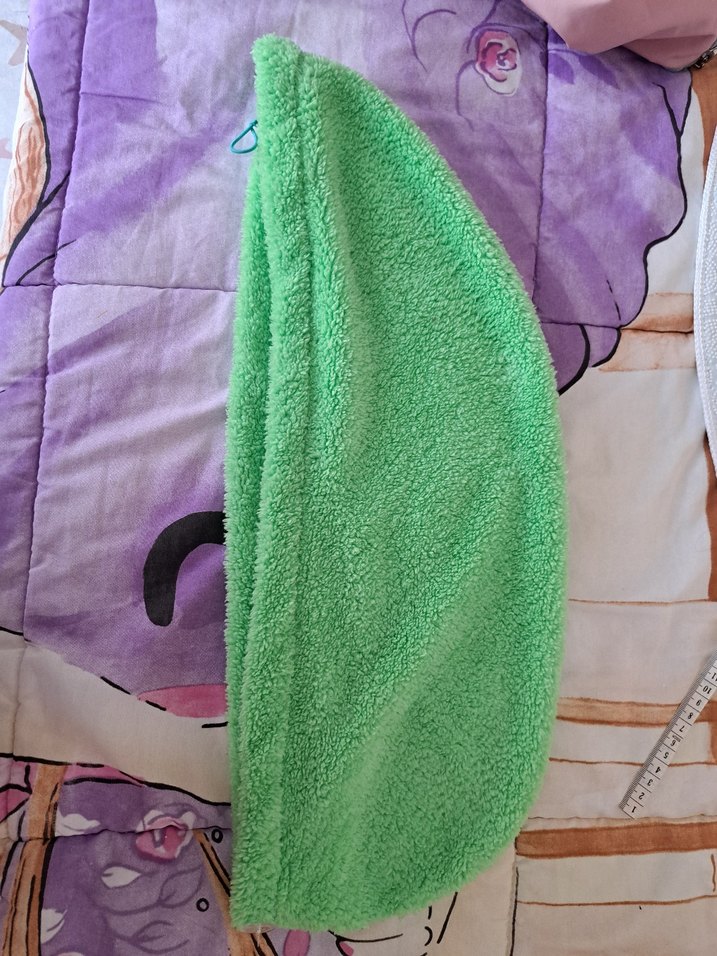Yumuşak dokulu, desensiz pastel yeşil havlu, saça dolanabiliyor.