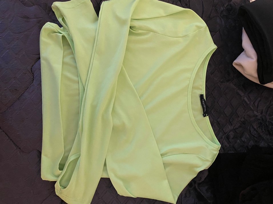 Pastel yeşil renkte, uzun kollu, yuvarlak yakalı, drapeli ve normal midi boyda hamile spor tişörtü. Yumuşak sentetik kumaştan, atletik ve sokak stiline uygun. ♀️