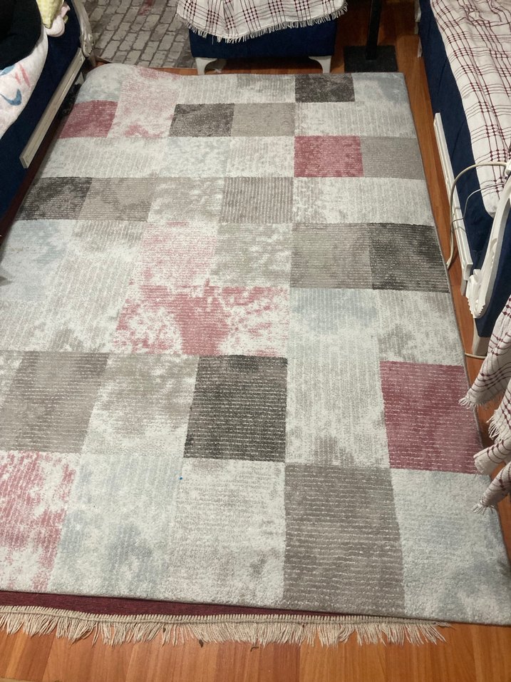 Fotoğraflardan görülenler: • Patchwork / modern desen • Kısa, homojen hav • Makine dokuma altyapı • Merinos etiket/hologram benzeri yuvarlak pul Halı Ölçüsü • En: 1,64 m • Boy: 2,46 m 4 m² Desen: Modern / Patchwork Durum: İyi, yırtık-sökük yok Kullanım: Salon – oturma odası – yatak odası Marka: Merinos Menşei: Türkiye Dokuma: Makine dokuma ORİJİNAL MERİNOS HALI – MODERN PATCHWORK DESEN Orijinal Merinos marka modern desenli halı Makine dokuma olup temiz ve bakımlıdır. Patchwork tarzı deseni sayesinde salon, oturma odası ve yatak odalarında şık bir görünüm sağlar