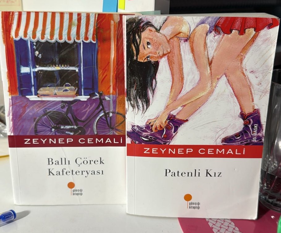 Zeynep Cemalı'nın İkiz Çörek Kafeteryası ve Patenli Kız adlı iki romanı, canlı kapak resimleriyle.