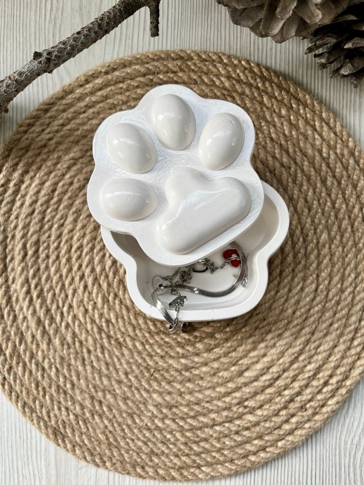 Küçük aksesuarlar için kedi patisi şeklinde kapaklı takı kutusu. Kompakt ve şık tasarım. . Taş tozundan yapılmıştır istenen renge boyanır verniklidir marka temsilidir