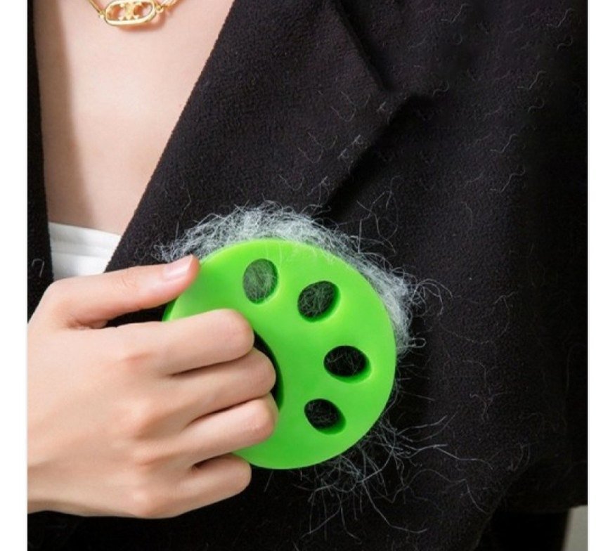 Yeşil renkli, giysi ve kumaşlardan evcil hayvan tüylerini etkili şekilde temizleyen sihirli sünger Kullanımı kolaydır.