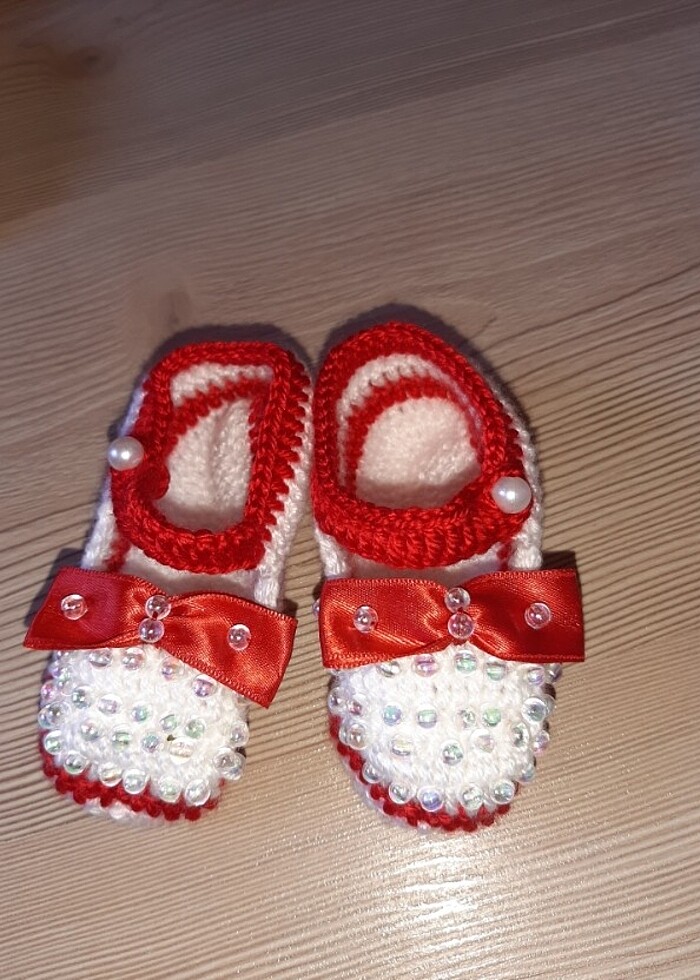 Kırmızı renkte boncuk ve fiyonk detaylı çok tatlı #patik #çetik elemeği sıfır sorunsuz üründür.Alt taban uzunluğu 10-11cm dir.Bebeğe göre değişir fakat yenidoğan için büyük,tam 1yaş için de küçük olabilir,o aradaki süreç için ideal oluyor.Sayfamda farklı renkleride mevcuttur