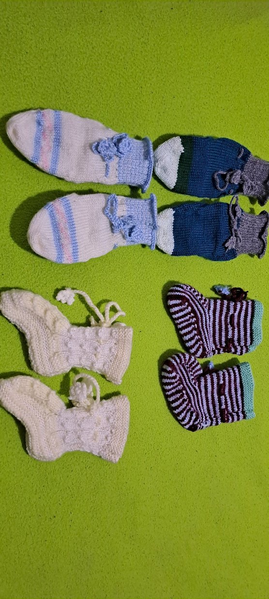 Çocuklar için çok renkli, çeşitli desenlerde ve bağcıklı örgü çoraplar. Rahat ve sıcak tutar. bebek patik sifir urun el orgusu tek satisi yok