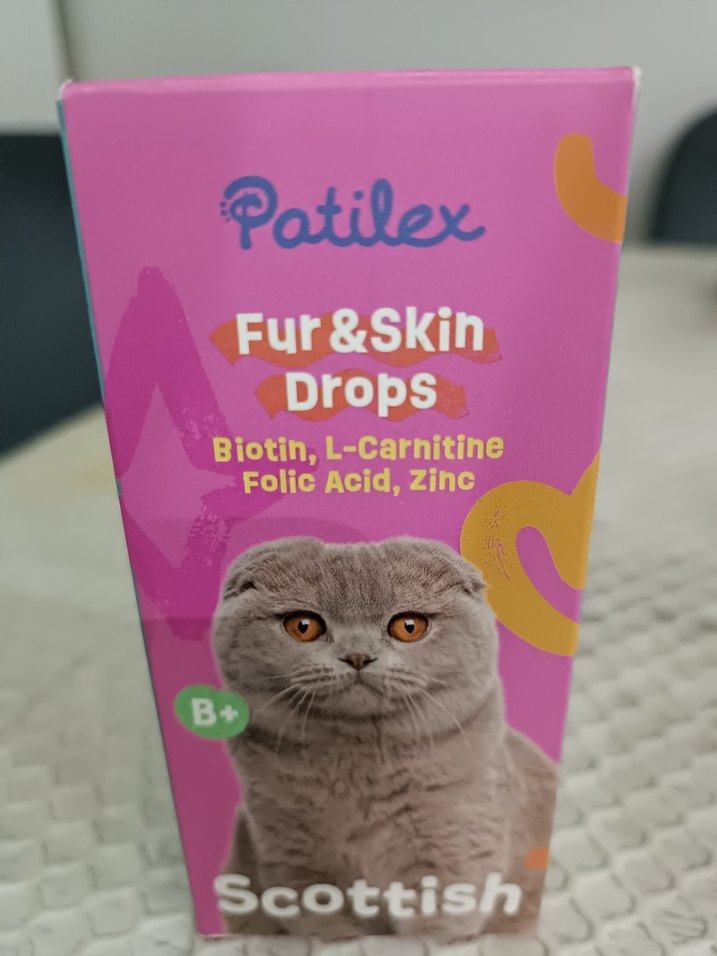 Patilex Scottish damlası, biotin, L-karnitin, folik asit ve çinko ile kedi tüyü ve cilt sağlığını destekler.
