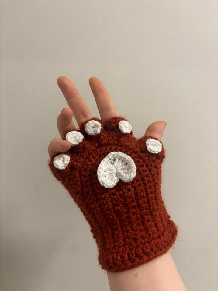 Kahverengi örgü eldivenler, beyaz pati detaylarıyla bohem ve retro tarzına uygun rahat bir tasarıma sahiptir. İstediğiniz renkte sipariş verebilirsiniz.