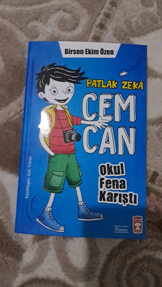 Birsen Ekimözen'in yazdığı 'Patlak Zekâ Cem Can - Okul Fena Karıştı' çocuk kitabı, okulda geçen heyecanlı bir macerayı anlatıyor. Kitap kapağında kamera taşıyan bir çocuk çizimi yer alıyor.