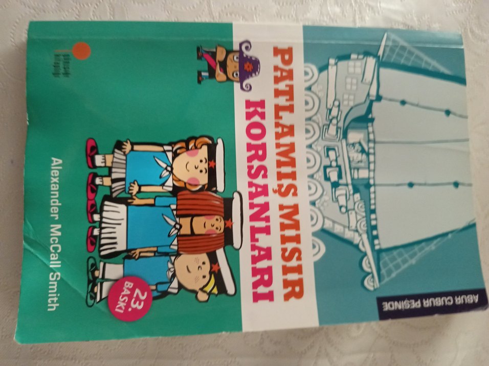 Patlamış Mısır Korsanları adlı çocuk kitabı, kapakta eğlenceli korsan karakterleri bulunur. 23. baskıdır. ☠️