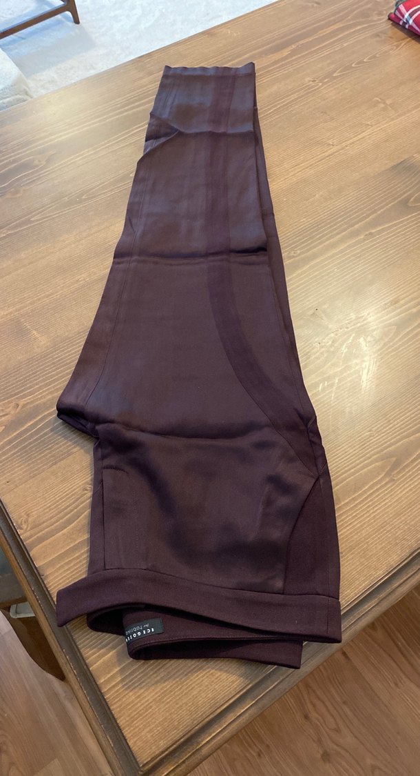 Patlıcan moru, bordo ve kahve renkleri karışımı şık pantolon