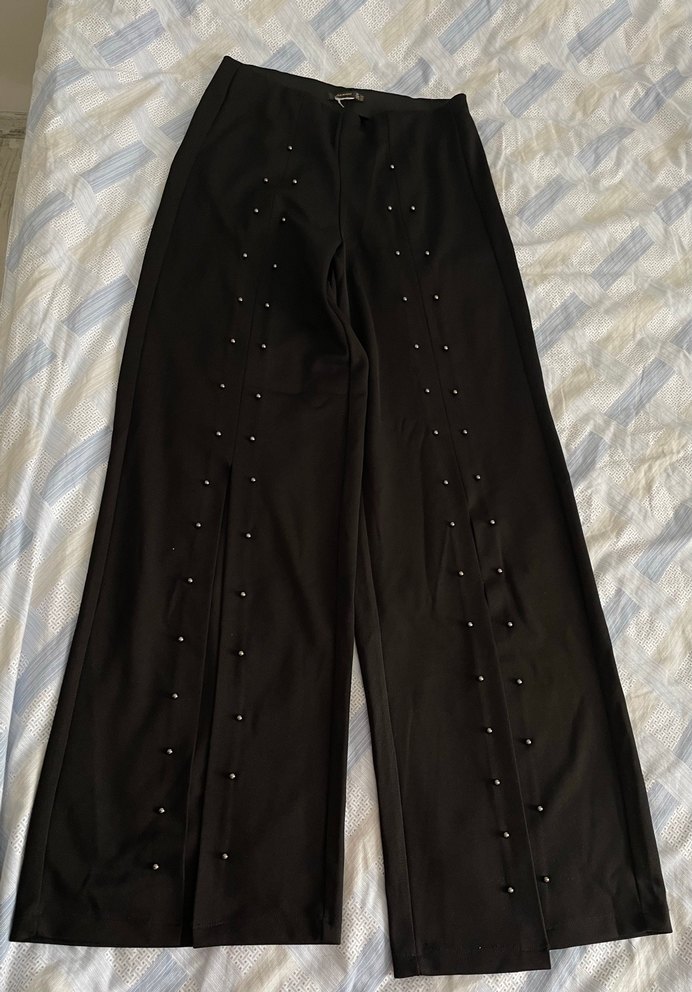 Paul mark 38 beden beli lastikli siyah ince yırtmaçlı pantolon. Boncukludur. Rahat bir pantolon. Cebi yoktur. 1-2 defa kullandım. Şık bir ürün.