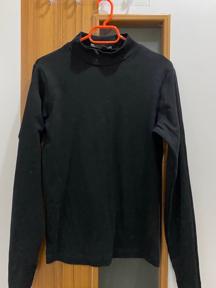 Kadınlar için boğazlı, uzun kollu ve ince kesim siyah sweatshirt. Yumuşak ve sıcak kumaştan, desen içermeyen minimalist tasarım, rahat sokak tarzına uygun. Günlük kullanım için ideal.L beden ama M bedenler tercih etmeli ,pamuklu bir ürün