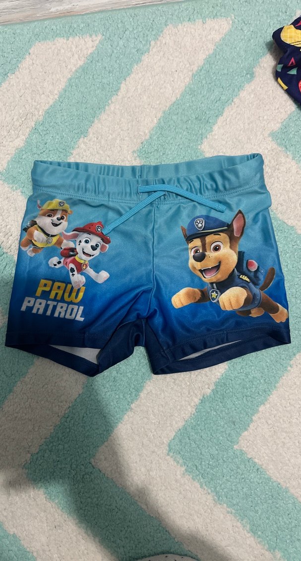 Renkli baskılı Paw Patrol karakterli erkek çocuk mayo şortu. Belinde ayarlanabilir bağcıklı lastik bulunur. 4 -5 yaş için uygundur
