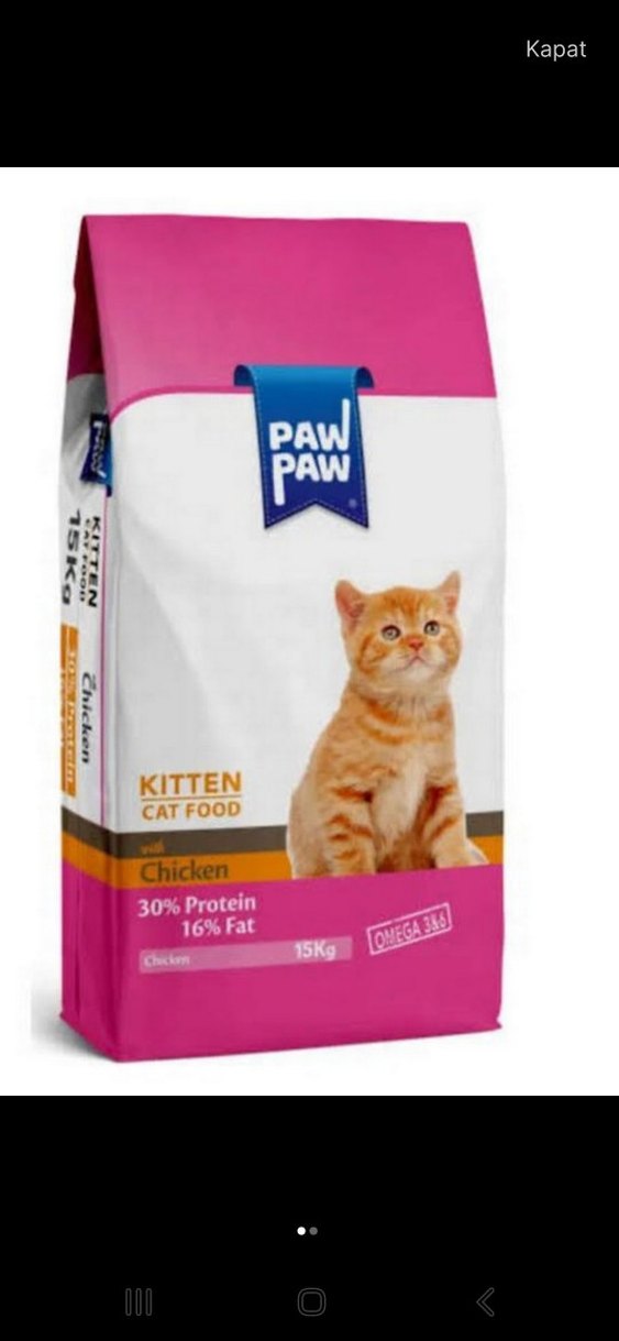 Paw Paw yavru kedi maması tavuklu olup %30 protein ve %16 yağ içerir, Omega 3 ve 6 ile zenginleştirilmiştir.