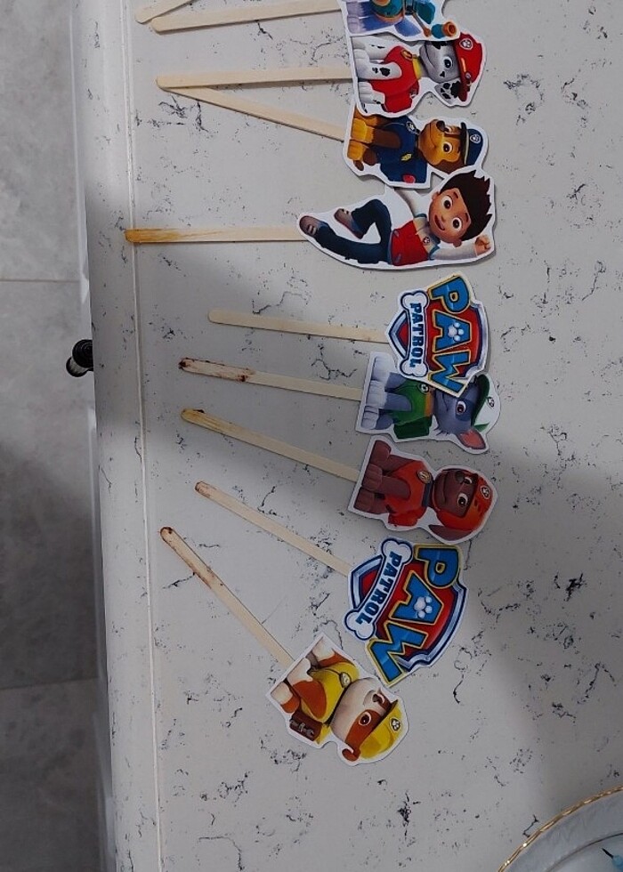 paw petrol doğum günü süsü, kürdan şeklinde. 10 adet, 7 cm boyunda. Bir kez kullanıldı.