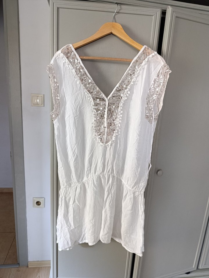 V yaka, kolsuz, payet detaylı, pamuklu pareo.Hiç kullanılmadı.ithal ürün.