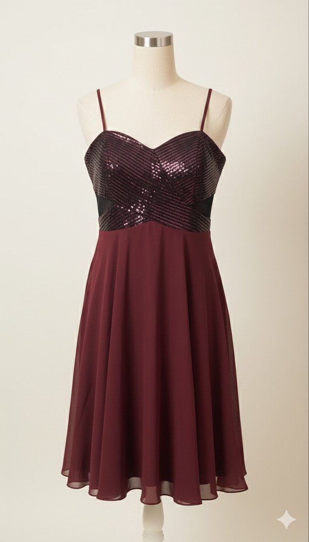 ✨ Beden 42 Bordo Payetli Kısa Abiye • Üst kısmı kaliteli ışıltılı payet, alt kısmı akışkan şifon • Askılı, göğüs kısmı destekli – çok şık ve toparlayıcı duruş • Sadece 1 kez giyildi, tertemiz, deformesiz • Arkası fermuarlı, vücuda oturan zarif bir model • Mezuniyet – Söz – Nişan – Özel günler için ideal Ürün Cemil İpekçi değildir.