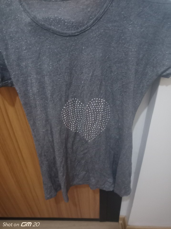 Yumuşak esnek kumaştan, kısa kollu, yuvarlak yakalı, önünde payetli kalp baskılı bol kesim köyü gri tişört Günlük sokak stiline uygun.
