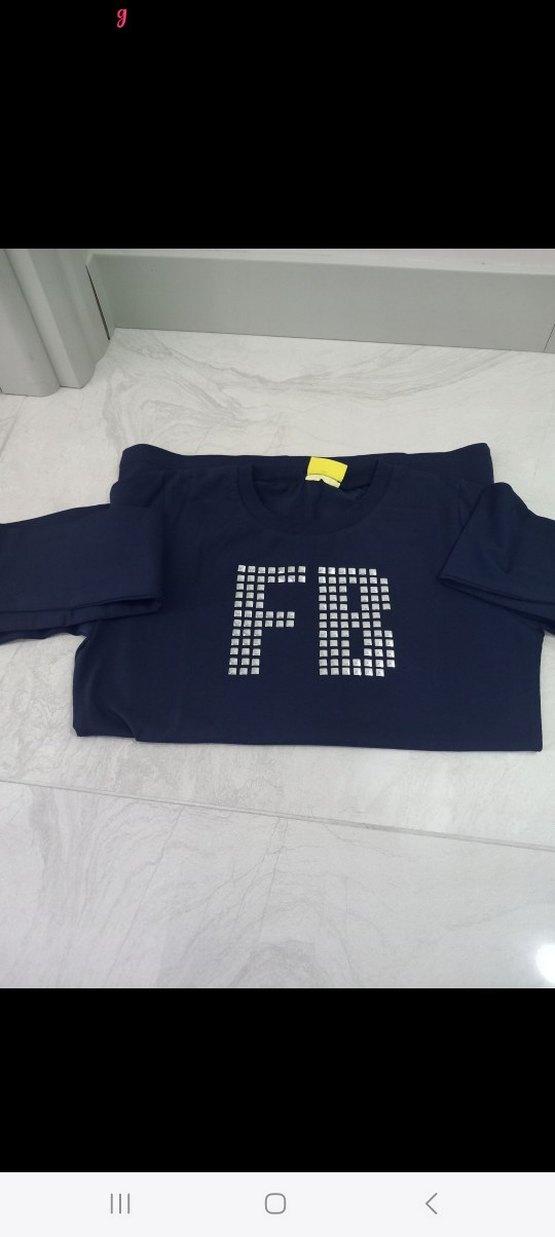 Mavi renkli tişörtü uzun kollu ve bisiklet yaka modelindedir. Ön kısmında payet detaylı 'FB' baskısı bulunur. Rahat ve bol kesimdir, günlük kullanım için uygundur.
