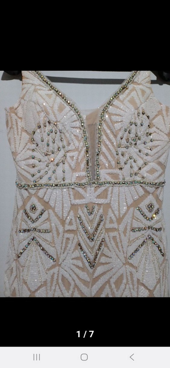Payet işlemeli, V yakalı ve kolsuz beyaz abiye elbise. Fitted kesim ve uzun boy ile şık ve göz alıcı bir tasarım. ✨birkere sunnette giyildi