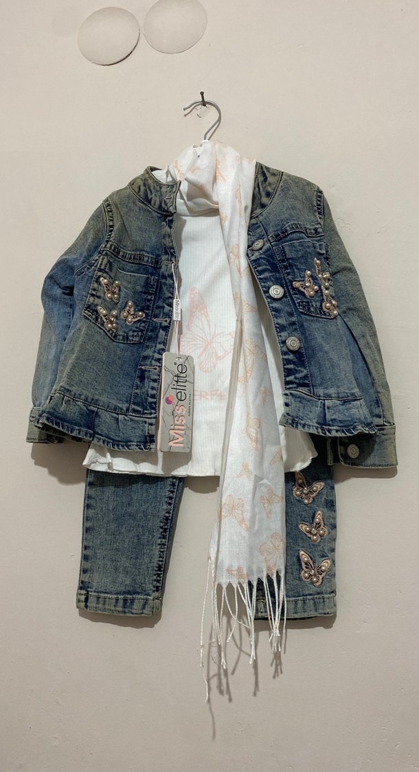 Payet İşlemeli Gri Denim Kız Ceketi takım