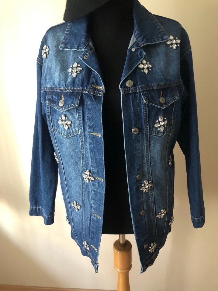 İşlenmiş taş detaylı jean ceket ## boy uzun jean ceket modeli ## 36 38 beden uyumlu ı Yeni Ürün