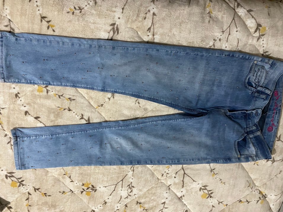 Payet İşlemeli Mavi Kadın Kot Pantolon
