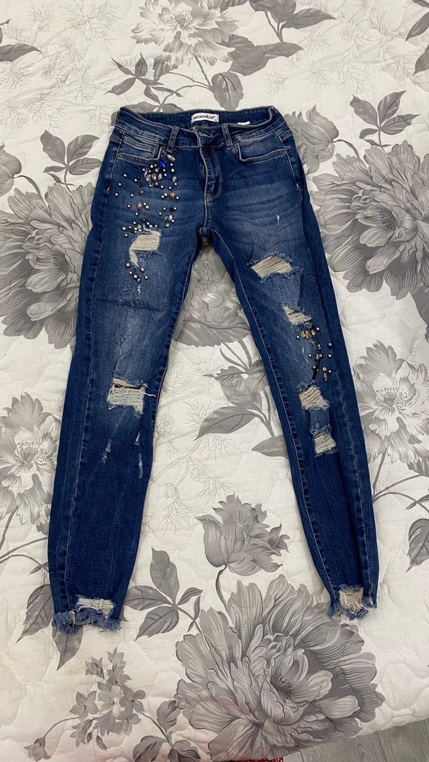 Modailgi orijinal ürünü , payet işlemeli ve yırtık detaylı, esnek kadın kot pantolon.
