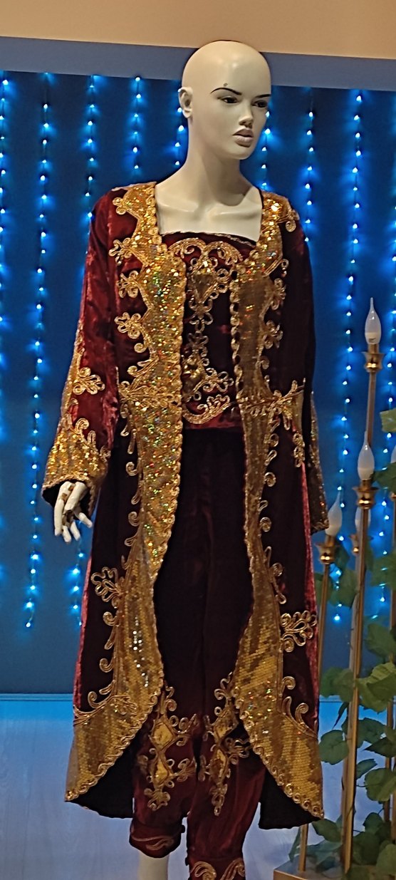 40 bedendir. kendinden astarlı satendir. polyester saten DEĞİLDİR. Üç parça takım halinde satılıktır payet işleme harika duruşu var.iki kol arası 54cm.