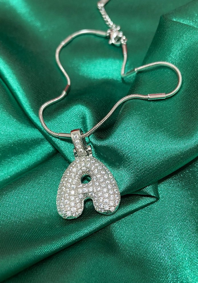 Bu kadın kolye, payetlerle süslenmiş A harfi ve beyaz yılan deseni tasarımına sahiptir. Normal midi uzunluktadır, cesur ve gösterişli sokak tarzına uygundur, romantik buluşmalar için idealdir.