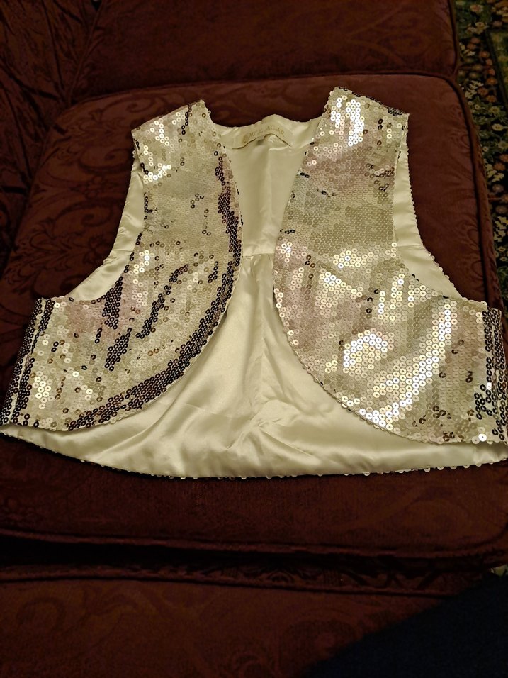 Payetli, vücuda oturan arkada kelebek islemeli kadın yeleği.