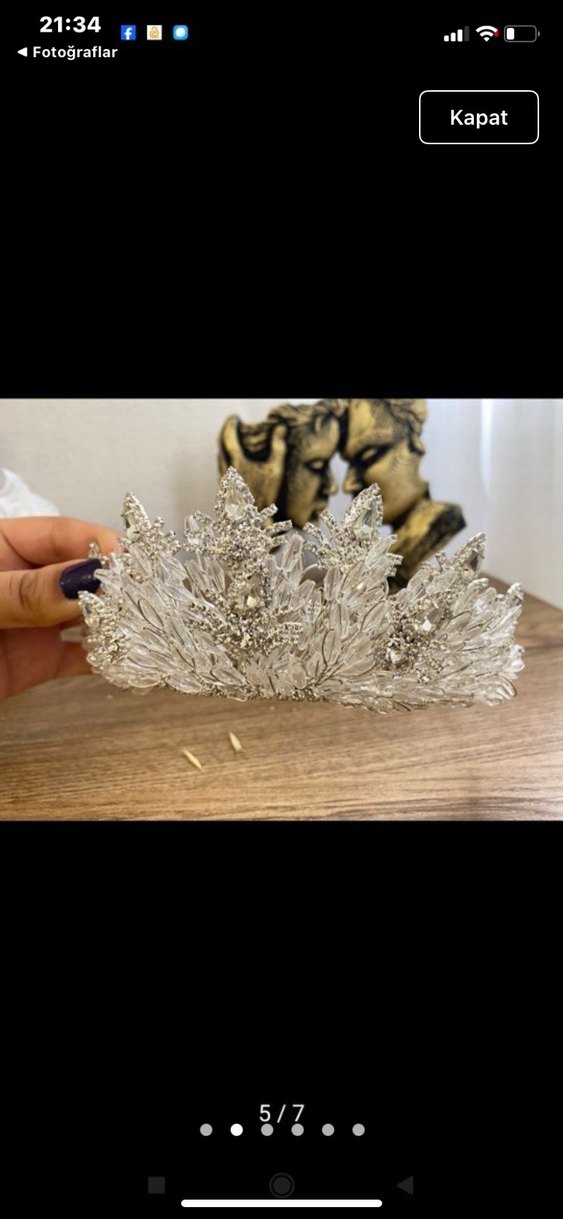 Bu bohem tarzı gelin tacı, beyaz ve gri tonlarda payetli detaylarla klasik zarafet katıyor. ✨ablam sadece düğün günü kullandı ve çok iyi durumda