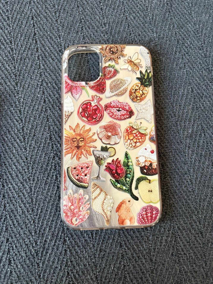Hafif çok renkli bu telefon kılıfı, meyveler, güneş ve çiçekler gibi çeşitli payetli tasarımlarla bohem tarzını yansıtıyor.