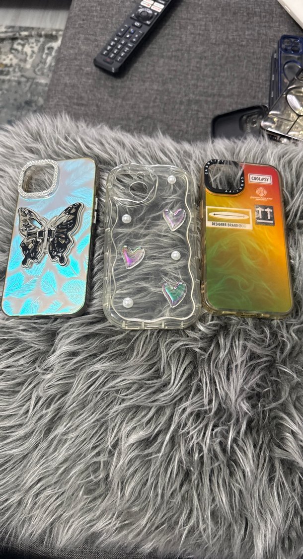 Koyu çok renkli, payetli ve dekoratif detaylara sahip counterculture tarzı telefon kılıfları. Her biri parlak öğelerle benzersiz tasarımlar sunar. Kusurları mevcut kelebek boya attık turuncuda silinikler mevcut yazısında kalpli olanda hafif cilası atıkları var toplu fiyat 13 iphone