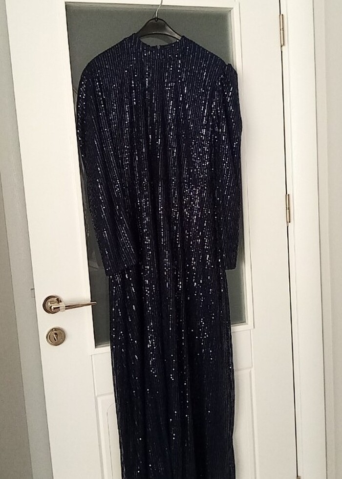 Payetli elbise lacivert 2 beden