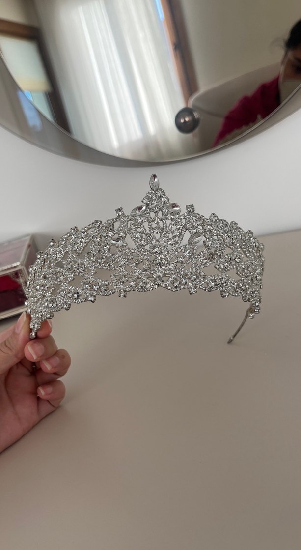 Payetli Gri Beyaz Gelin Tacı