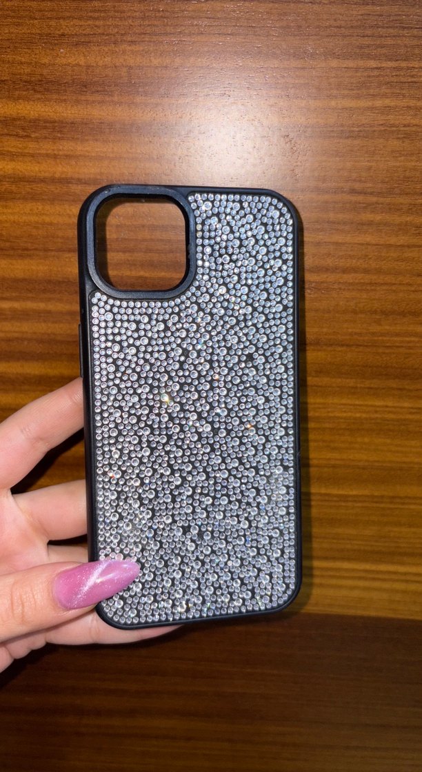 Gri renkte, payetlerle kaplı bohem tarzda telefon kılıfı, dekoratif ve parlak bir görünüm sunar.