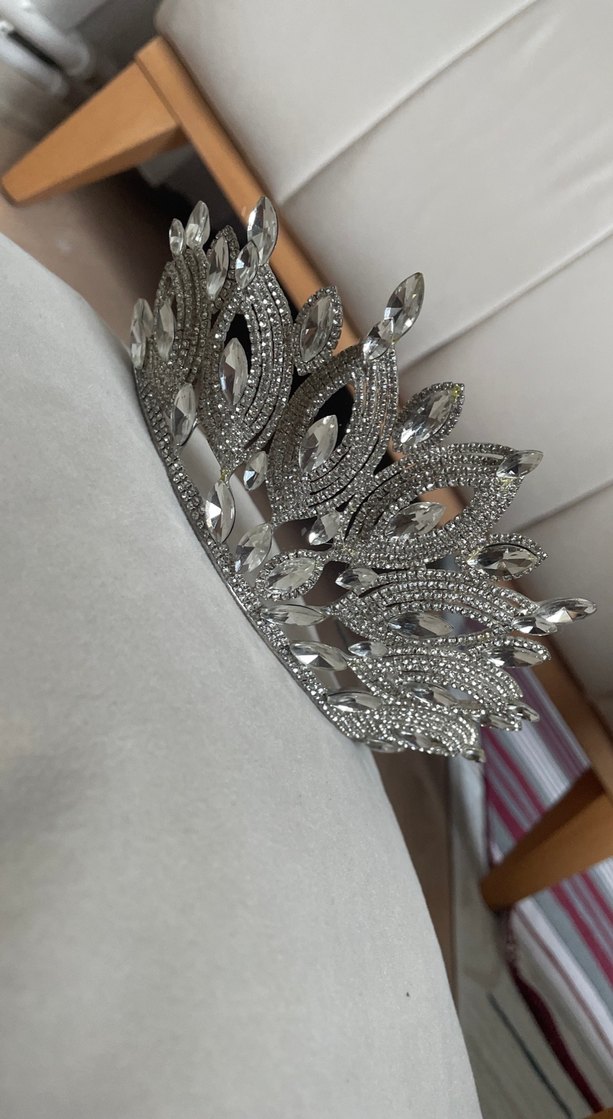 Payetli Gri Gelin Tacı