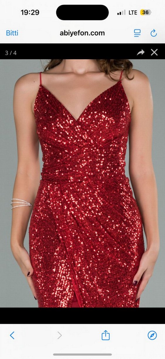 V yakalı, ince askılı kırmızı abiye elbise, payet ve nakış detaylarıyla parlak ve şık bir görünüm sunar. ✨Karasızlıgjndan iki model aldı digerini kullandı bu etiketli duruyor sıfır ürün