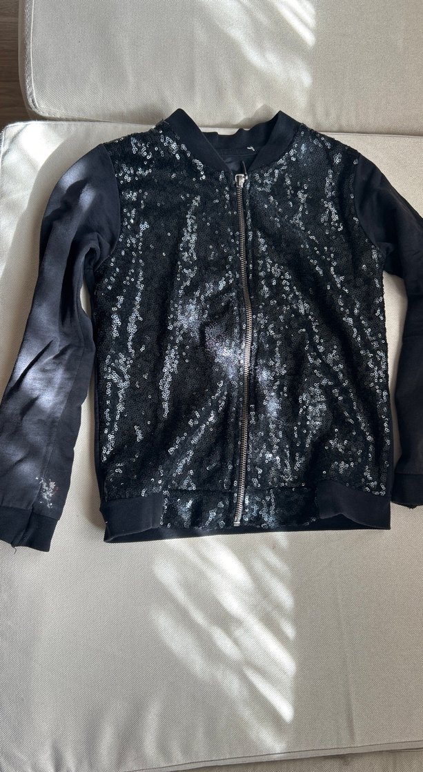 Payetli kız çocuk ceketi kusurları resimlerde bellidir fiyatı onun için biraz daha uygun tuttum etiketini kestiğim için yaş aralığı 6-7dır markası temsilidir