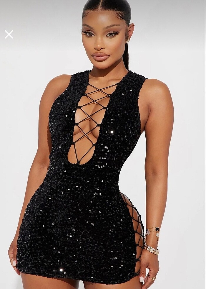 Payetli mini kuşgözü dekolteli elbise etiketli