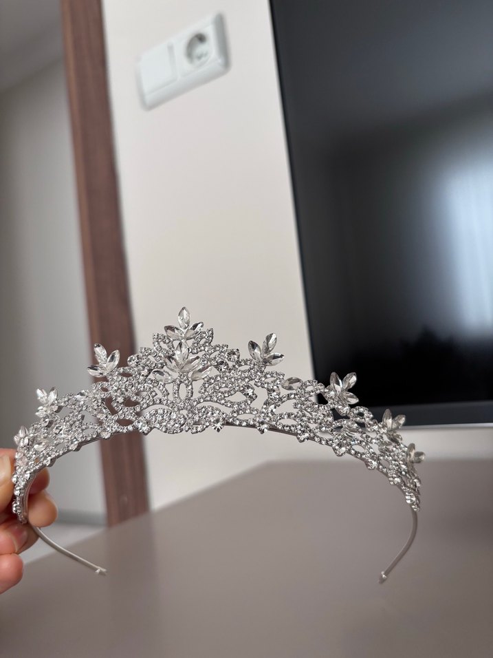 Payetli Modern Klasik Beyaz Gelin Tacı Kına Tacı ve Halay mendil