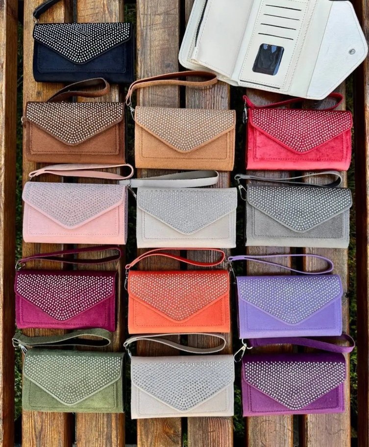 Payetli Nakışlı Süet Kadın Taşlı Portföy Cüzdan
