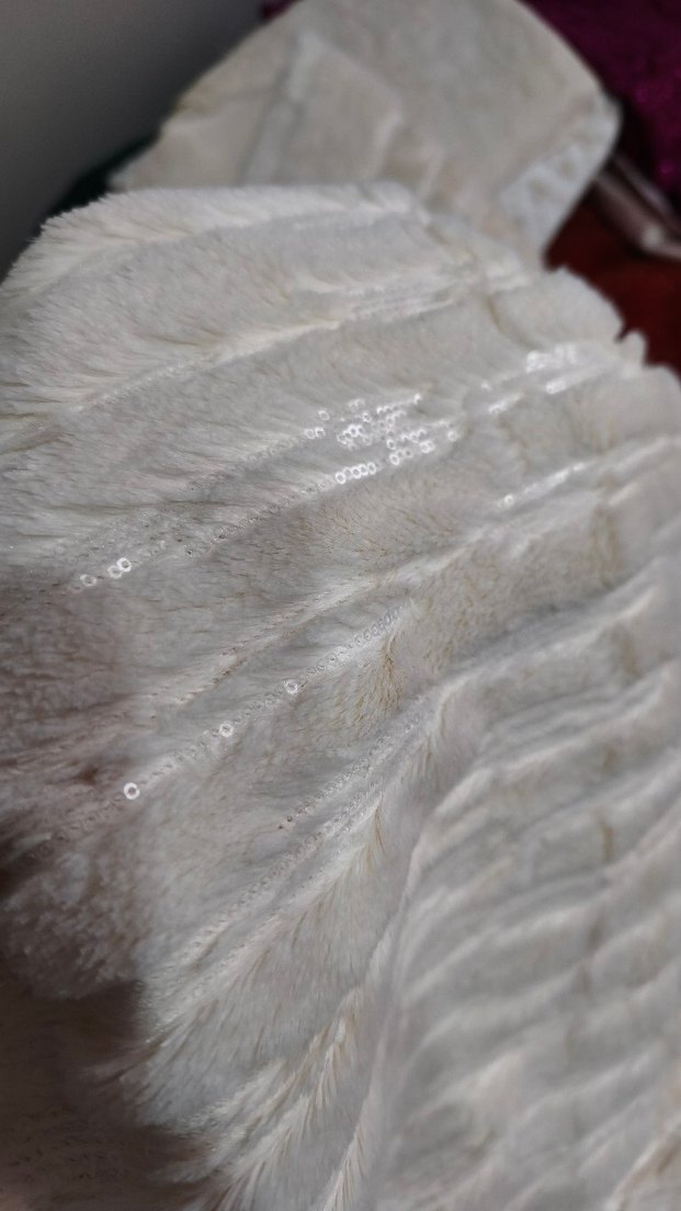 Krem renginde payetli peluş kumaş. en 160cm boy 2,5 mt.