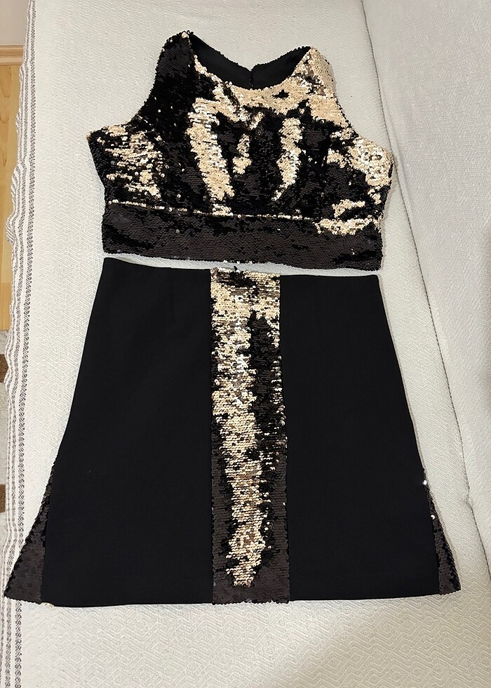Payetli şık gece düğün etek bluz