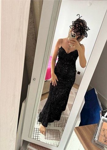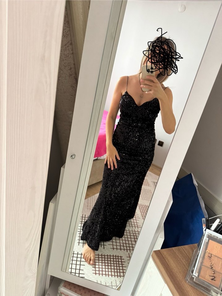 Payetli siyah elbise