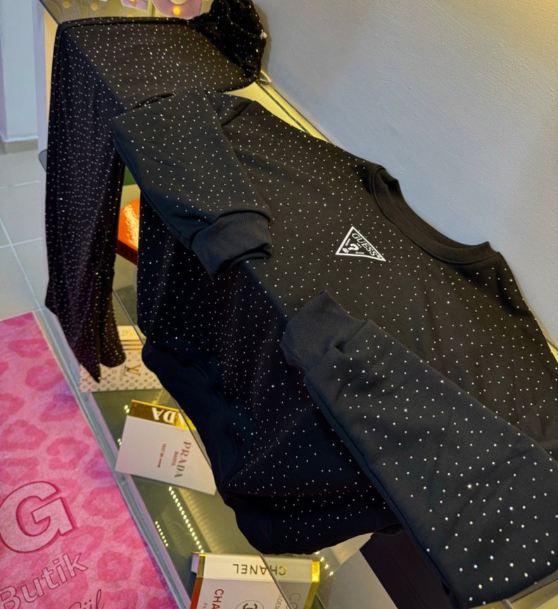 Payetli Siyah Hamile Uzun Kollu Tişört